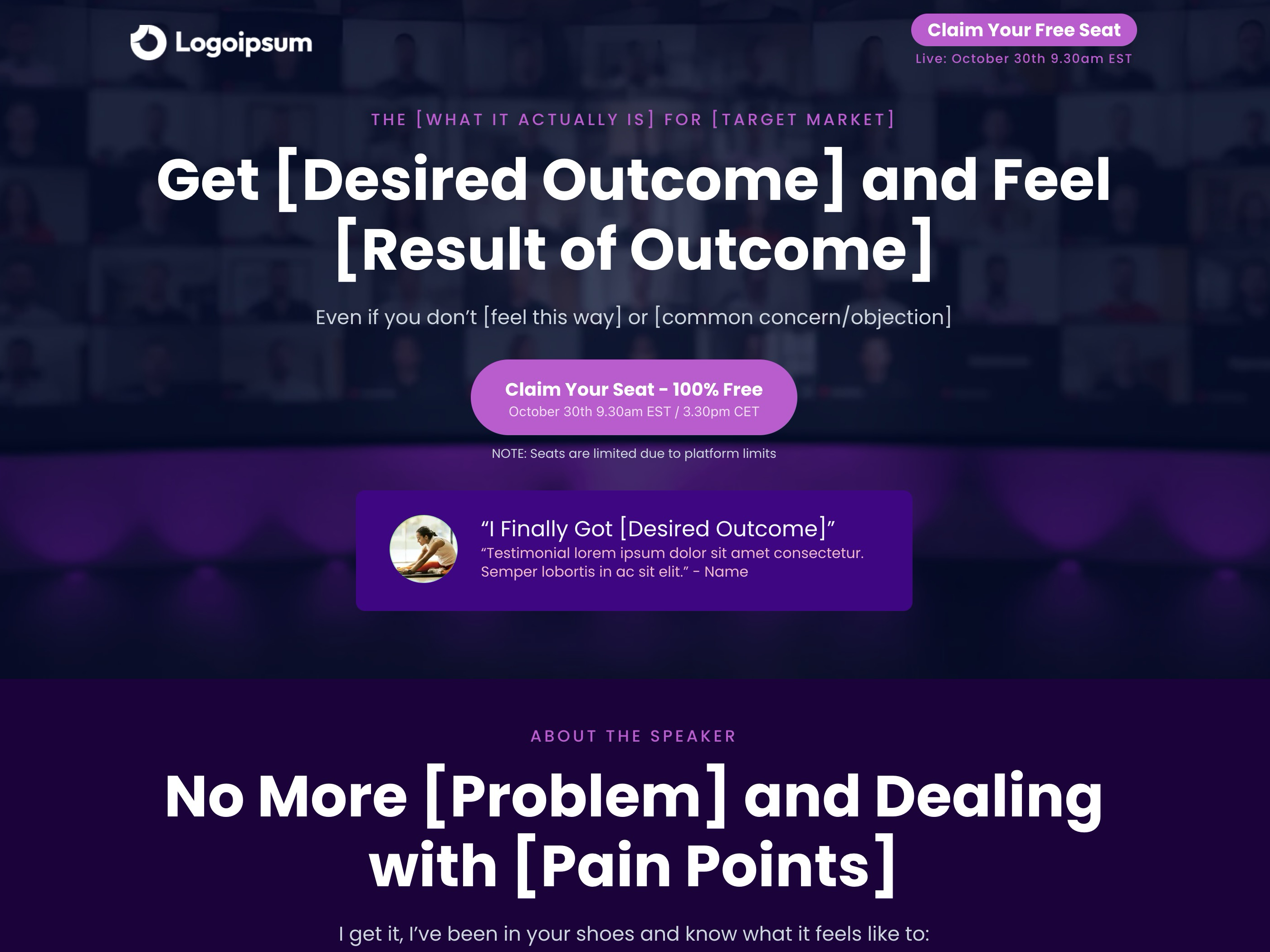 Using my own templates, I create registration pages convert upwards of 23% of cold ad traffic. With warm traffic, this will be even higher!